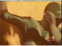 Jinxer stumbles into a room with flashing lights, and gestures his hands in awe at what he sees: a giant wall of flames. |