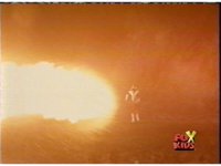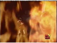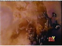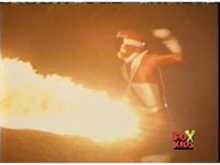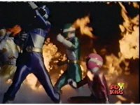 The Rangers try to leap out of the fire, but it reconsumes them, Queen Bansheera talks and gestures, as they suffer, then soon she causes them to become electrocuted. |