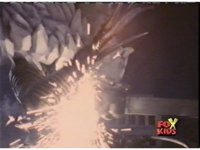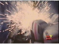 Red nod-talks, then Lightspeed Megazord does its Ladder Arm punches, spark bursting Queen Bansheera until she grabs its fists, shifts her position around, talks, then sending electricity through the arms, spark bursting the Megazord. |