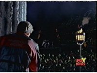 Carter watches Queen Bansheera addressing a crowd of Batlings. |