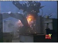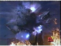 Pink nod-talks, then Time Force Megazord Mode Blue bounces off a rubbery cloud, firing its Blaster at Jetara again, he fires back, everything goes into bullet time as they fire on each other repeatedly, until an explosion erupts between the pair. |