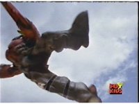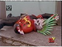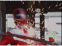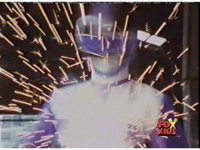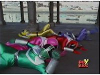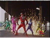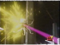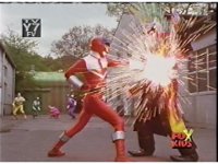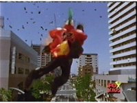 Red recovers, gets up, activates visor vision, scans Tentaclaw, who then fires blasts from his tentacles at the Rangers, who dive out of the spark bursting way. |