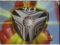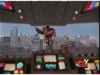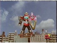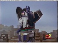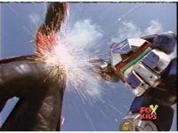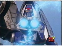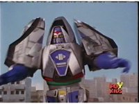 The Time Jet transforms into Blaster mode, Time Force Megazord Mode Blue grabs it. |