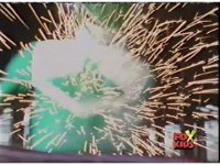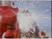 Unfreezing, Punky bursts brightly, then explodes massively, all while Mode Red is turned away. |