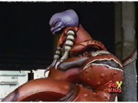 Red rolls back up and whips his Chrono-Sabers forth, sending a blast of red energy at Tentaclaw, spark bursting his tentacles off, causing the Mutant to slump his arms. |