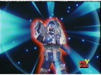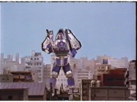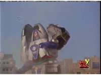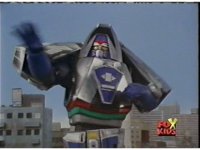 Time Force Megazord Mode Blue lowers its Blaster, triumphantly. |