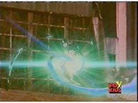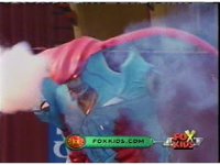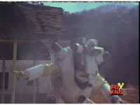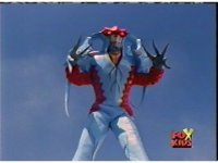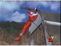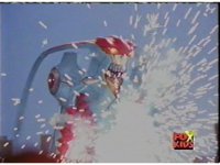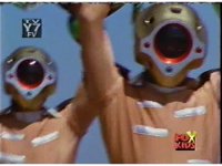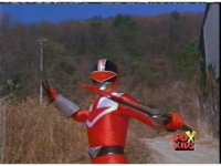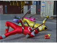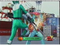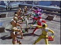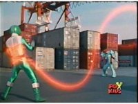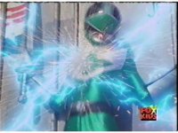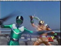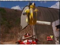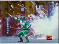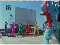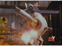Cuts follow-up of Rangers reacting due to Vortex Blaster appearance. |