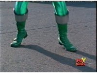 Green leaps up, does a Time Strike on Rabbitcon, who spark bursts profusely. Green then turns around and nod-talks. |