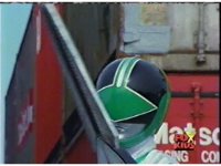 Green is lifted off the ground by Rabbitcon's lash, then thrown into a shipping container, electrocuting him before he falls. |