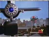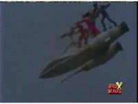 Time Flyer 1 is bopped on the thruster by Trans-Warp Megazord, sending it flying forth. |