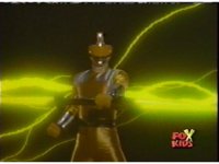 Her helmet lit up, Yellow charges up her Chrono-Saber with yellow energy, then slashes Medicon with each blade repeatedly, as he crackles with electricity, before she turns around and he explodes massively behind her. |