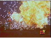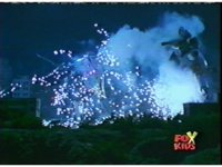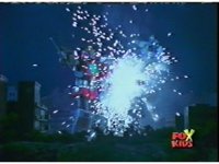 As Mode Red watches, Medicon unfreezes, spark bursts some more, then collapses and explodes massively. |