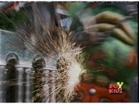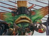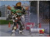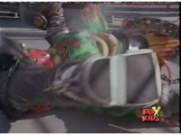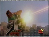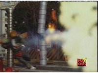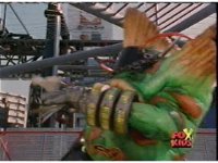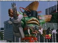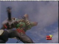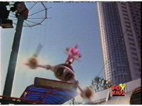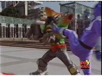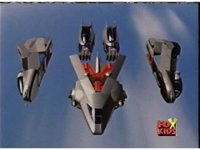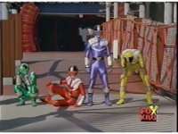 Time Flyer 1 is bopped on the thruster by Trans-Warp Megazord. |