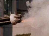 Fatcatfish walks forth, talking with his gun arm held forth. |