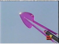 Pink swoops in on the Time Jet, Fatcatfish turns, and she fires on him. |