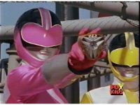 Cuts follow-up shots of Pink pointing weapon, and Rangers reacting. |