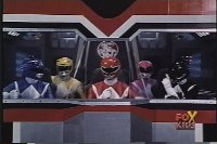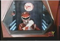Zoom in on cockpit as Red Ranger raises fist up, then forth, then grips control . |