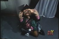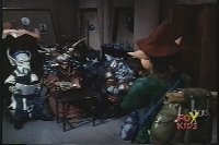 Squatt lets go of pipe and begins to plummet, when he too vanishes out of thin air. |