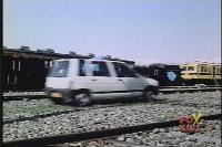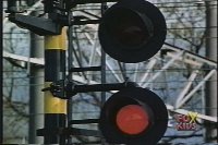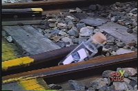 Commuter train reappears on tracks, resuming trip right where it left off. |