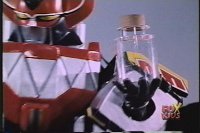 Zoom out as Megazord holds up a bottle in its left hand. |