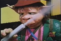 Rita happily leaves Repulsascope, goes over to Baboo & Squatt, who respond with equal glee, then to our right, pointing forth as Goldar walks up steps. |