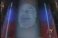 Close up of Zordon, tilting head to our left, talking with a slow shaking from right to left. |