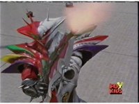 Trans-Warp Megazord launches Shadow Winger into the Time Gate, where it passes down its very own time vortex. |
