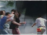Pan down, in actual archival footage of a volcanic lava river flowing. |