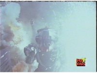 Trims each cockpit shot to reduce visibility of visor-damaged Red. Cuts follow-up Q-Rex tail attack on Mode Red. |