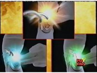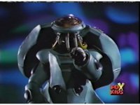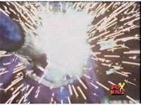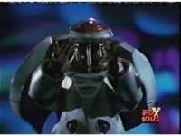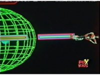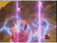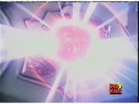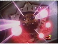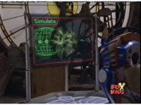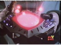 Circuit watches a computer simulation of the Electro Booster firing upon the dimension while a beam fires from within, successfully freeing the Ranger colored balls. |