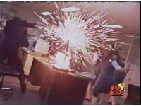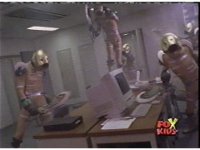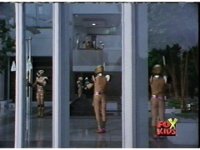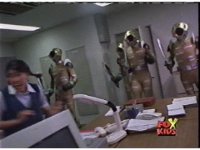 Cyclobots enter a room, the Japanese civilians flee, before they are sparkily fired upon, the Cyclos then trashing the room. |