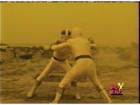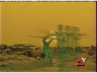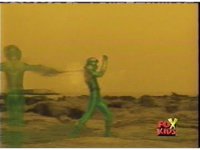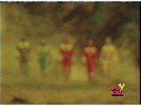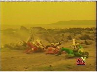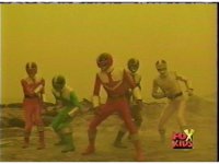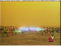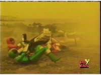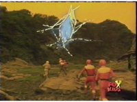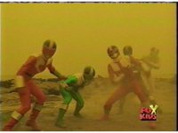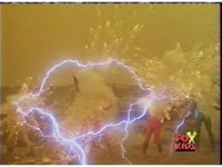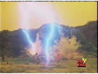 The Rangers are teleported into the yellow beach dimension, Yellow nod-talking, as all get up and look around, before lightning crackles down and explodes around them, knocking them down. |
