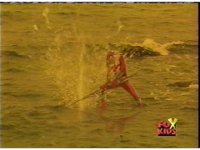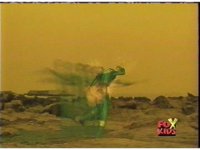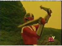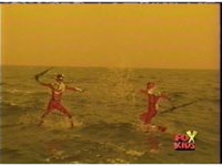 The two Reds take to the water, fighting atop the waves, Sabers to Sabers, until Evil Red pushes Red down under the sea. |