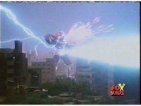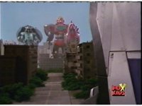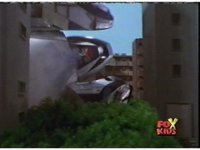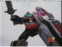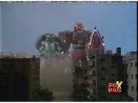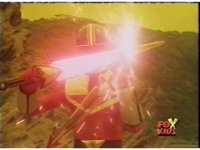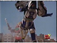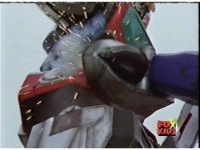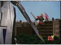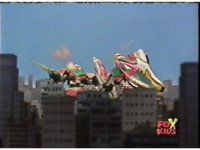 Time Flyer 1 is bopped on the thruster by Trans-Warp Megazord. |