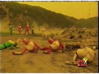 All ten Rangers fire their V-Weapons on each other at once, causing a massive explosion, which knocks both teams down. |