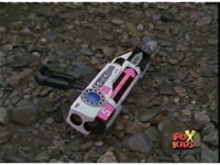 Pink arrives at the riverbank location where she needs to fire, with 2 minutes to spare, when Evil Pink appears and blasts her V5 out of her hands. |