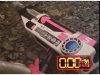 Red aims at his own Time Target clockface, as Shadow Force Mode Blue fires its Saber blaster forth. |