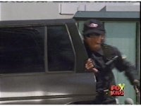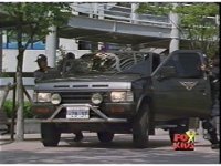 A black Silver Guardians SUV pulls to a stop, the Guardians start piling out, as the second SUV arrives and more troops begin to race about. |