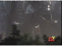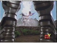 Quantasaurus Megazord strikes Time Shadow sparkily, causing it to fall down. |
