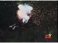 US explosion superimposed on end to transition scene; cuts follow-ups of more QM VS TSM, plus Conwing blasting Rangers. |