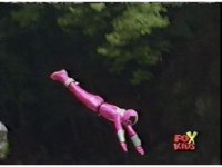Pink dives into the river. |