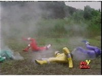 The smoking Rangers react to Conwing, Yellow nod-talking and leading the team in rushing forth, only to all get blasted down by Conwing. |