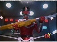 Red whips out his control stick and it transforms into a double of the Shadow Force Saber. |