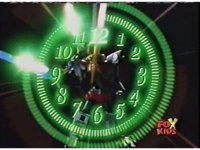 Shadow Force Mode Red slashes its Saber downward three times through the green clockface. |