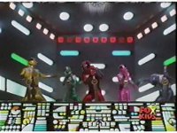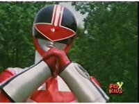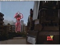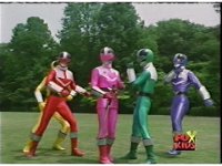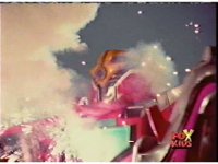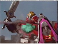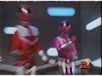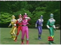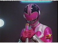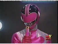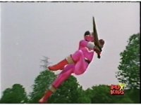 Pink leaps forth and sparkily slashes Contemptra down, then poses, before her teammates regroup around her, Red flexing his fist to his palm, ready to rumble, before Pink pulls out her V5. |