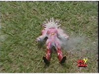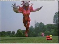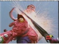 Contemptra is thrown across the field, but recovers and unleashing her tentacles, leading Pink to press her Chrono-Morpher and begins to spin attack them, cutting them up, much to the Mutant's horror. |