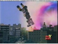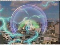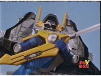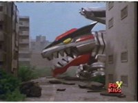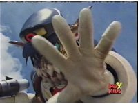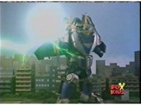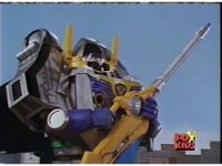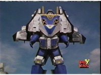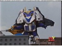 Trans-Warp Megazord bops itself in the butt, sending it flying forth into the Time Gate, where it passes through the vortex, and lands in the present, posing battle ready. |