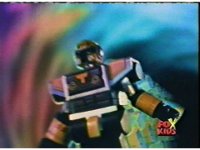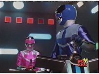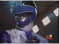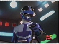 Shadow Force Mode Blue fires its blaster at Cinecon, but it passes through a triangle portal, missing him entirely, to which he talks and points. |