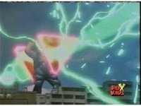 Trans-Warp Megazord leaps up, and does a spinning punching attack through the air, sparkily striking Cinecon until he falls down. |
