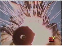 Trims some of final shot; cuts follow-ups of SFMB bursting, then stepping out from behind the screen unharmed. |